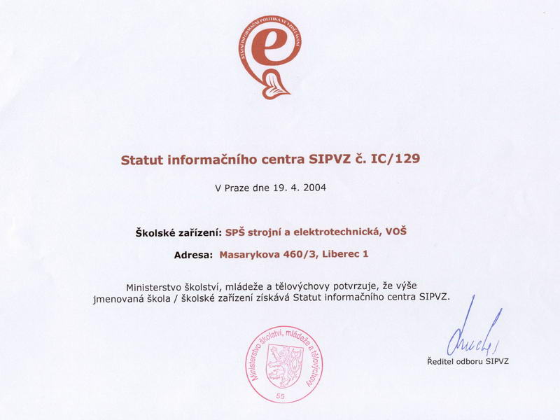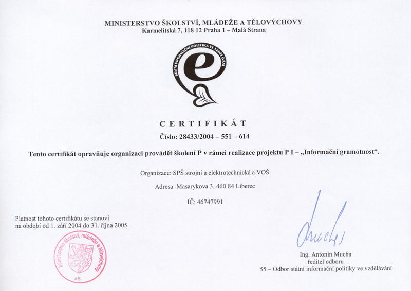 -- certifikát školení P - modul PU (Využití počítačových sítí ve výuce) -- obnovení platnosti certifikátu Z a P (9/2005-12/2006) -- Status informačního centra -- Status informačního centra (původní) -- certifikát školení P -- certifikát školení Z